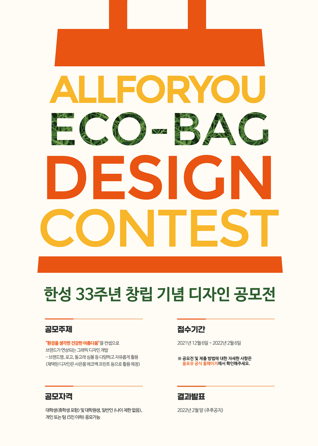 올포유에코백 디자인 공모전 - 한성 33주년 창립 기념 디자인 공모전